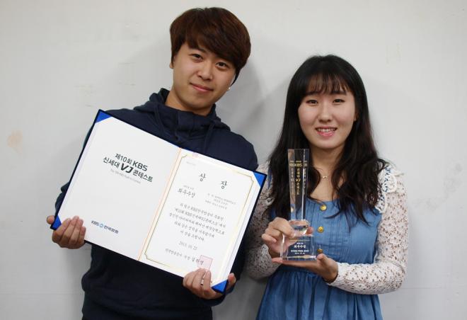 ¿ø±¤´ëÇб³ ¿ø´ë¹æ¼Û±¹ ¹Ú¼ºÈÆ(Á¤Ä¡ÇàÁ¤¾ð·ÐÇкΠ3³â), ±èº¸Àº(±¹¾î±¹¹®Çаú 3³â) Çлý ±âÀÚµéÀÌ Á¦10ȸ KBS ½Å¼¼´ë VJÄÜÅ×½ºÆ® ÃÖ¿ì¼ö»óÀ» ¼ö»óÇß´Ù.