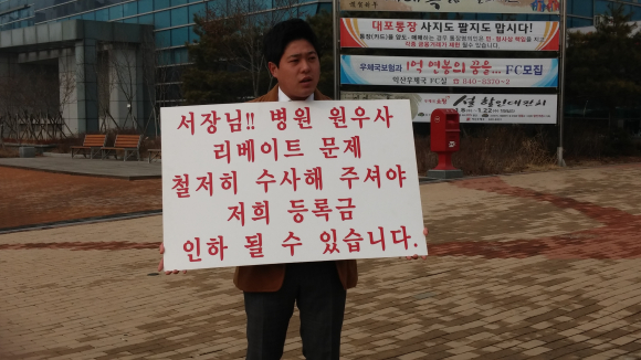 ±è ÇлýȸÀåÀº '¼Àå´Ô, º´¿ø ¿ø¿ì»ç ¸®º£ÀÌÆ® ¹®Á¦ öÀúÈ÷ ¼ö»ç ÇØÁÖ¼Å¾ß ÀúÈñ µî·Ï±Ý ÀÎÇ쵃 ¼ö ÀÖ½À´Ï´Ù'¶ó´Â ÇÇŶÀ» µé°í °æÂû¼ ÀÔ±¸ÀÎ ¿ìü±¹ »ç°Å¸®¿¡¼ ½ÃÀ§¸¦ ¹ú¿´´Ù. ±×´Â "¿ø±¤´ëÇб³¿Í ºñ½ÁÇÑ ±Ô¸ðÀÇ Çб³µéÀº µî·Ï±ÝÀ» ÀÎÇÏÇϰųª Áö³ÇØ¿Í µ¿°áÀ» ¹ßÇ¥Çß´Ù"¸é¼ "¿ø±¤´ëÇб³µµ ÀçÁ¤ÀÌ ¾î·Æ´Ù´Â »·ÇÑ ´äº¯¸¸ ÇÏÁö ¸»°í ÁøÁ¤¼º ÀÖ´Â ´ëÈ¿¡ ³ª¼Áֱ⠹ٶõ´Ù"°í ¸»Çß´Ù.