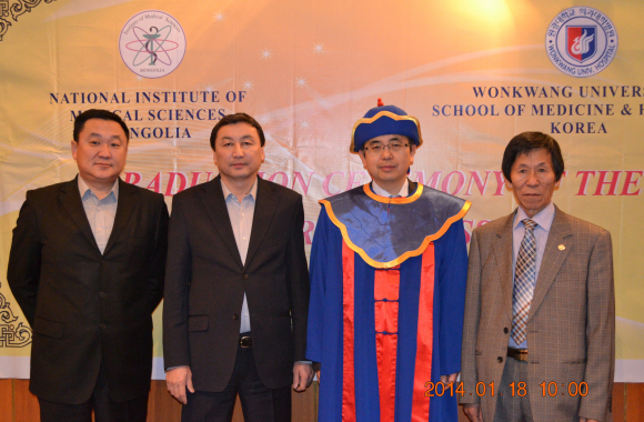 |  | | | ¨Ï ÀÍ»ê½Å¹® | | ¼ÀÏ¿µ ±³¼ö(¿ø±¤´ëÇб³º´¿ø ºñ´¢±â°ú)°¡ Áö³ 18ÀÏ ¸ù°ñ ¿ï¶ó¹ÙŸ¸£¿¡ À§Ä¡ ÇÑ ¸ù°ñ ±¹¸³ÀÇÇпø (National Institute of Medical Sciences of Mongolia)¿¡¼ ¸í¿¹¹Ú»ç ÇÐÀ§¸¦ ¼ö¿© ¹Þ°í ¸í¿¹±³¼ö·Î À§ÃË µÇ¾ú´Ù.