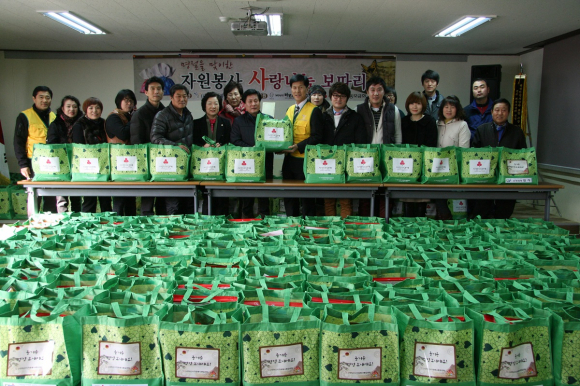 À̳¯ ÀÚ¿øºÀ»çÀÚµéÀº ÀÍ»ê½ÃÁֹμ¾ÅÍ¿Í ÀÚ¿øºÀ»ç´Üü, À¯°ü±â°ü µî¿¡¼ ÃßõÇÑ Àå¾ÖÀÎ, µ¶°Å³ëÀÎ, ¼Ò³â¼Ò³à°¡Àå¼¼´ë, Â÷»óÀ§¼¼´ë µî¿¡°Ô 5¸¸2õ¿ø »ó´çÀÇ ½Ò․¶ó¸é, ÂüÄ¡¼±¹°¼¼Æ®, ¶±±¹ ¶±À¸·Î ±¸¼ºµÈ »ç¶ûÀÇ ³ª´®º¸µû¸®¸¦ Àü´ÞÇÏ¸ç »ç¶ûÀ» ³ª´³´Ù.