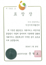 ÀÍ»êÀÚȰ¼¾ÅÍ, º¸°Çº¹ÁöºÎÀå°ü ǥâÀå ¼ö»ó