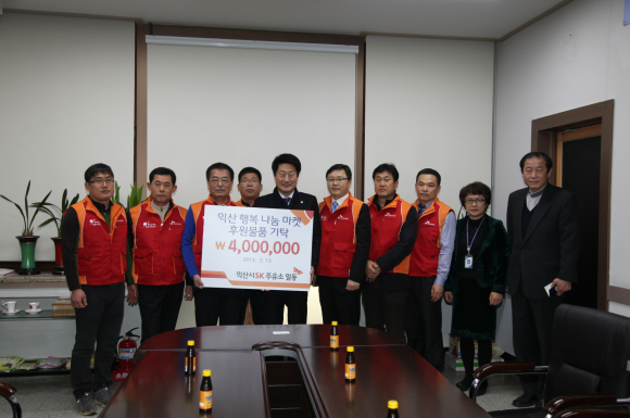 ÀÍ»ê½Ã SKÁÖÀ¯¼Ò´Â 13ÀÏ ÀÍ»ê½Ã¸¦ ¹æ¹®ÇØ ¾î·Á¿î ÀÌ¿ôÀ» À§ÇØ »ç¿ëÇØ ´Þ¶ó¸ç 400¸¸¿ø »ó´çÀÇ »ç¶ûÀÇ ³¿ºñ¼¼Æ®¸¦ ÀÍ»êÇູ³ª´®¸¶ÄÏ¡¤¹ðÅ©¿¡ Àü´ÞÇß´Ù.