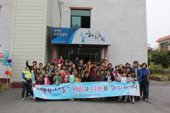 (ÁÖ)¸¸³ë³ëµ¿Á¶ÇÕ ÀÍ»êÁöºÎ(ÁöºÎÀå ±èÇÏÁø)°¡ »çȸº¹Áö½Ã¼³ÀÎ ÇØÇǵ帲(¿øÀå ÃÖ¿Á¼÷)À» ¹æ¹®ÇØ Àå¾ÖÀΰú ºñÀå¾ÖÀÎÀÌ ÇÔ²² ÇÏ´Â »çȸÅëÇÕ ÇÁ·Î±×·¥ ½Ã°£À» °¡Á³´Ù.