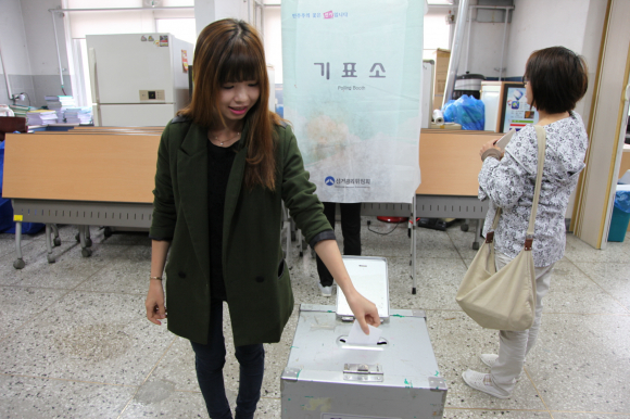 Âü¼®ÀÚ ÀåÀ±Á¤(23,ÀÀÀ¢Æ¼Å½)¾¾´Â ¡°Çѱ¹ ±¹¹ÎÀ¸·Î ¼±°Å¿¡ Âü¿©ÇÒ ¼ö ÀÖ´Ù »ý°¢ÇÏ´Ï ¼³·¹Àδ١±¸ç ¡°°¡Á·µé°ú ÇÔ²² À̹ø Áö¹æ¼±°Å¿¡ ¼ÒÁßÇÑ ÇÑ Ç¥¸¦ ²À Çà»çÇϰڴ١±°í ¸»Çß´Ù.