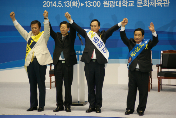 13ÀÏ ¿ÀÈÄ ¿ø±¤´ëÇб³ ¹®ÈüÀ°°ü¿¡¼ 100% °ø·ÐÁ¶»ç ¼±°ÅÀ뫆 ÅõÇ¥·Î ¿¸° »õÁ¤Ä¡¹ÎÁÖ¿¬ÇÕ ÀüºÏµµÁö»ç Èĺ¸ ¼±Ãâ´ëȸ¿¡¼ ¼ÛÇÏÁø È帴 °ºÀ±Õ, À¯¼º¿± È常¦ Á¦Ä¡°í µµÁö»ç Èĺ¸·Î È®Á¤µÆ´Ù.