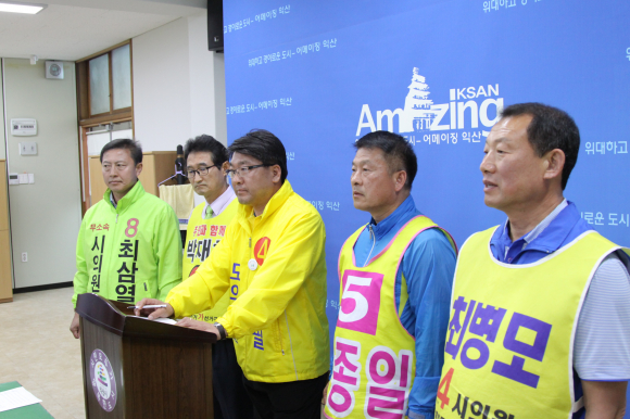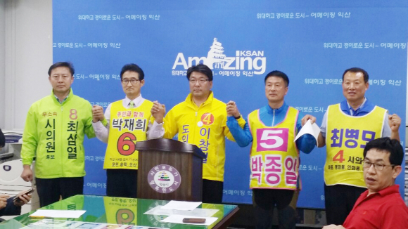 29ÀÏ ¿ÀÀü ÀÍ»ê½Ãû ºê¸®Çη뿡¼ ¿¸° ±âÀÚȸ°ß¿¡¼´Â Á¦1¼±°Å±¸ ÀÌâÇÊ µµÀÇ¿ø Èĺ¸¿Í °¡¼±°Å±¸ ¹ÚÁ¾ÀÏ(±âÈ£ 5)¡¤¹ÚÀçÈñ(±âÈ£ 6)¡¤ÃÖ»ï¿(±âÈ£ 8)½ÃÀÇ¿ø Èĺ¸, ³ª¼±°Å±¸ ÃÖº´¸ð(±âÈ£ 4) ½ÃÀÇ¿ø È帰¡ Âü¼®ÇØ À̹ø Áö¹æ¼±°Å¿¡¼ ÇÔ²² ÈûÀ» ¸ðÀ» °ÍÀ» ¾à¼ÓÇß´Ù.
