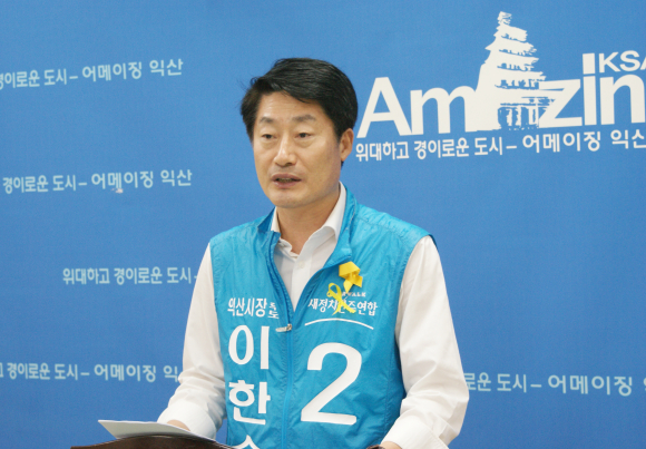 ÀÌÇѼö¡¤¹Ú°æÃ¶ ÀÍ»ê½ÃÀå È帰¡ ¼±°Å¸¦ ÀÌÆ² ¾ÕÁØ ½ÃÁ¡¿¡¼ ¸·ÆÇ ±âÀÚȸ°ßÀ» ÅëÇÑ ÇÑÆÇ ¼³ÀüÀ» ¹ú¿´´Ù.