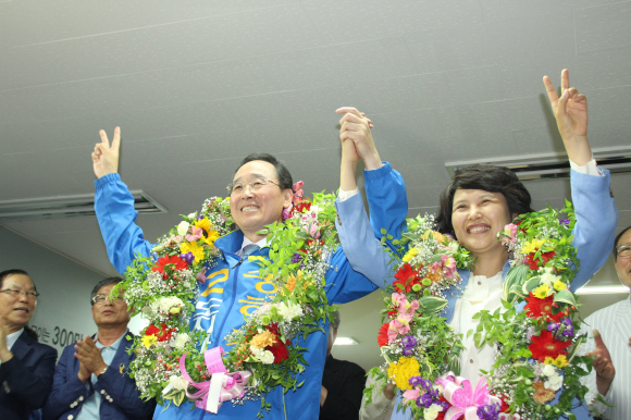 ¼Û È帴 4ÀÏ Ä¡·¯Áø ÀüºÏµµÁö»ç ¼±°Å¿¡¼ 59¸¸9654Ç¥¸¦ ¾ò¾î 69.23%¶ó´Â ¾ÐµµÀûÀÎ µæÇ¥À²·Î 17¸¸7172Ç¥(20.45%)¸¦ ¾ò´Âµ¥ ±×Ä£ »õ´©¸®´ç ¹Úö°ï È常¦ Å« Â÷ÀÌ·Î ´©¸£°í µµÁö»ç¿¡ ´ç¼±µÆ´Ù. ÅëÇÕÁøº¸´ç À̱¤¼® È帴 8¸¸9337Ç¥(10.31%)¸¦ ¾ò´Âµ¥ ±×ÃÄ 3À§¸¦ Â÷ÁöÇß´Ù.