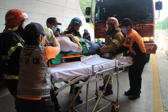ÀÍ»êÁö¹æ±¹Åä°ü¸®Ã»ÀÌ Åͳο¡¼ ±³Åë»ç°í·Î ÀÎÇÑ ÈÀç ¹ß»ý µî ±ä±Þ»óȲ¿¡ ´ëÇÑ Ãʵ¿Á¶Ä¡ ´É·Â Çâ»óÀ» À§ÇØ ´ëÀÀ ÈÆ·ÃÀ» ½Ç½ÃÇß´Ù.
