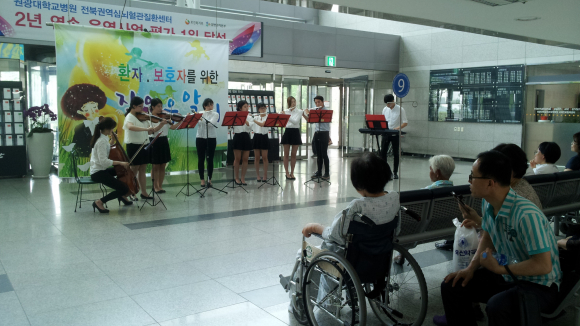 17ÀÏ Á¤¿À ¿ø±¤´ëÇб³º´¿ø(º´¿øÀå Á¤ÀºÅÃ) ¿Ü·¡µ¿ 1Ãþ ·Îºñ¿¡¼´Â ¿ø±¤º¸°Ç´ëÇб³ °£È£Çаú ÇлýµéÀÇ µ¿¾Æ¸® 'Èú¸µ¹ÂÁî' ´Ü¿ø 11¸íÀº ¹ÙÀ̿ø°, ÿ·Î, ÇÃ·Ô µîÀ» ºñ·ÔÇÑ °üÇö¾Ç±âµé·Î ¸í°îµéÀ» ¿¬ÁÖÇØ ȯÀÚ¿Í °í°´µé¿¡°Ô ¹Ú¼ö°¥Ã¤¸¦ ¹Þ¾Ò´Ù.