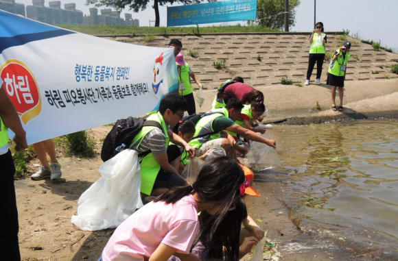 À̳¯ ¸ðÀÎ ¡®Çϸ² ÇÇ¿ÀºÀ»ç´Ü °¡Á·¡¯°ú Çϸ² ÀÓÁ÷¿ø, ȯ°æ½Çõ¿¬ÇÕȸ °ü°èÀÚ µî 80¿©¸íÀº ÇѰ ÀÏ´ë »ýŰ踦 ¾Ë¾Æº¸´Â »çÀü±³À°¿¡ Âü¿©ÇÏ°í »ýÅÂÀü¹®°¡ÀÇ Àμֿ¡ µû¶ó ¹° ¼Ó »ýÅÂ°è º¸È£¸¦ À§ÇØ ½î°¡¸®∙½¬¸® µî ÅäÁ¾ ¹°°í±â Ä¡¾î(»õ³¢¹°°í±â)¸¦ ÇѰ¿¡ ¹æ·ùÇßÀ¸¸ç ¹° À§¿¡¼´Â ȯ»ïµ¢±¼ µî ¿Ü·¡ À¯ÇؽŰ Á¦°Å¿Í ȯ°æÁ¤È Ȱµ¿°ú ¾î¸° ÀÚ³àµéÀÌ »ýÅÂ°è º¸È£ÀÇ Àǹ̸¦ Áñ°Ì°Ô ±ú´ÞÀ» ¼ö ÀÖµµ·Ï ¹ö·ÁÁö°Å³ª Á×Àº ³ª¹µ°¡Áö¸¦ Ȱ¿ëÇØ ¡®¹«°øÇØ ¾×¼¼¼¸®¡¯¸¦ ¸¸µå´Â µî ÅäÁ¾»ýÅÂ°è º¸È£È°µ¿À» ÁøÇàÇß´Ù.