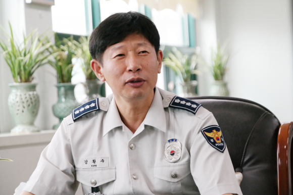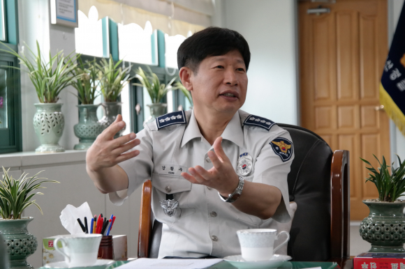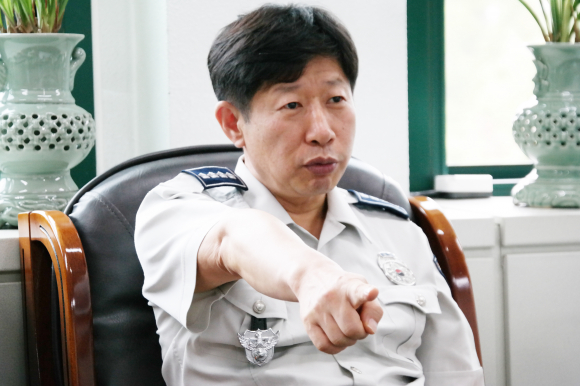 Áö³ 7ÀÏ ÀÍ»ê°æÂû¼ÀåÀ¸·Î ºÎÀÓÇÑ °È²¼ö ÃѰæÀº ÀÌ¿ôÁý ¾ÆÀú¾¾ °°¾Ò´Ù. ¿ÂÈÇÑ ¾ó±¼¿¡ Ä£±ÙÇÑ ¸ð½ÀÀÌ ³¸ÀÍÀº »ç¶÷ó·³ ¿©°ÜÁ³´Ù. 10³â¸¸¿¡ °íÇâ ÀÍ»êÀ¸·Î º¹±ÍÇÑ ° ¼Àå. ±×ÀÇ Ã¹ ȵδ ¼ÒÅë°ú °øÁ¤À̾ú´Ù. ÃëÀÓ½ÄÀ» ´ë½ÅÇØ Àü Á÷¿ø°ú ¼ÒÅë°£´ãȸ¸¦ ¿ Á¤µµ¿´´Ù. ½Ã¹Îµé°ú ¡®°æÂûÀÌ ¿Ö ÇÊ¿äÇѰ¡¡¯¸¦ °øÀ¯ÇÏ°í ½Í´Ù°í ÇÑ´Ù. ÀÌÀ¯´Â ¾î¶² °æ¿ì¶óµµ °æÂûÀº ±¹¹ÎÀ§¿¡ ±º¸²Çؼ´Â ¾È µÉ »Ó¸¸ ¾Æ´Ï¶ó, ¹ýÀ» ¾î±ä »ç¶÷¿¡°Ô ¹«½Ã¸¦ ¹Þ¾Æ¼´Â ´õ¿í ¾ÈµÈ´Ù´Â »ý°¢ ¶§¹®À̶õ´Ù. Á» ±îÄ¥ÇÑ Áú¹® Çϳª Çß´Ù. ±ÇÀºÈñ Àü ¼ö»ç°úÀåÀÇ ±¤ÁÖº¸¼± Ã⸶¿¡ ¾î¶»°Ô »ý°¢ÇÏ³Ä°í¡¦ ¡®³ëÄÚ¸àÆ®¡¯Çß´Ù. ¿Ö ±×·¯³Ä°í ´Ù½Ã ¹¯ÀÚ, ¾÷¹«¿Í ¹«°üÇØ ÇÒ ¸»µµ ¾ø°í, ¸»ÇÏ°í ½ÍÁöµµ ¾Ê´Ù°í Çß´Ù. °¼ÀåÀÇ ¸®´õ½ÊÀ» ¿³ º¼ ¼ö ÀÖ´Â ´ë¸ñÀÌ´Ù. ´ë´ãÀº 17ÀÏ ¿ÀÀü ¼Àå½Ç¿¡¼ ÀÌ·ïÁ³´Ù. ´ë´ã=Çϴ뼺 ÆíÁý±¹Àå
