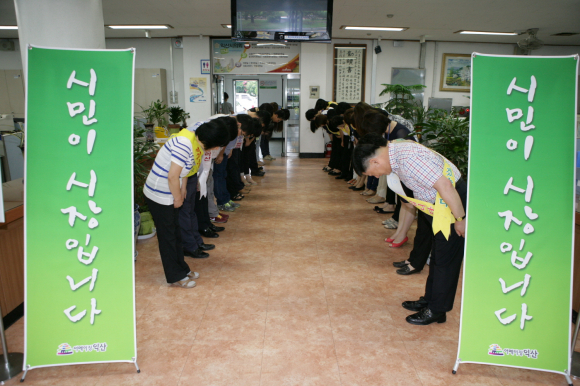|  | | | ¨Ï ÀÍ»ê½Å¹® | | ÀÍ»ê½Ã Á¾Çչοø°ú°¡ ¹Î¼±6±â ¡®½Ã¹ÎÀÌ ½ÃÀåÀÔ´Ï´Ù¡¯ ½½·Î°Ç¿¡ µû¶ó ¹Î¿ø¼ºñ½ºÀÇ ¸¸Á·µµ¸¦ ³ôÀ̱â À§ÇØ Èû¾²°í ÀÖ´Ù.