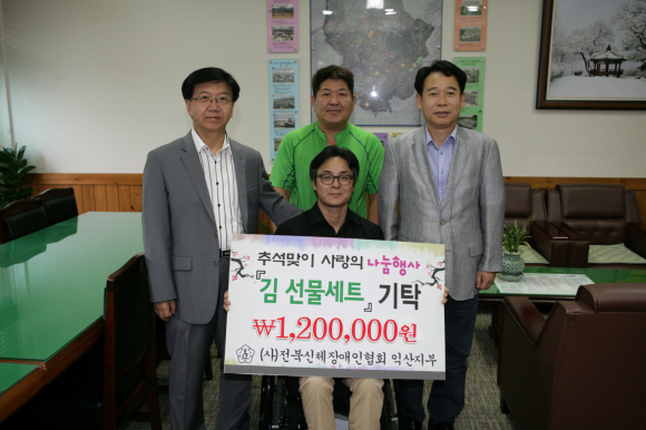 ÀüºÏ½ÅüÀå¾ÖÀÎÇùȸ ÀÍ»ê½ÃÁöºÎ(ÁöºÎÀå ½Å¿ë)´Â Ãß¼®À» ¸Â¾Æ 700¿©¸íÀÇ È¸¿øµéÀÌ ½Ê½ÃÀÏ¹Ý ¸ðÀº ¼º±ÝÀ¸·Î ¸¶·ÃÇÑ ±è100¹Ú½º(120¸¸¿ø »ó´ç)¸¦ 2ÀÏ ÀÍ»ê½Ã¿¡ ±âŹÇß´Ù.