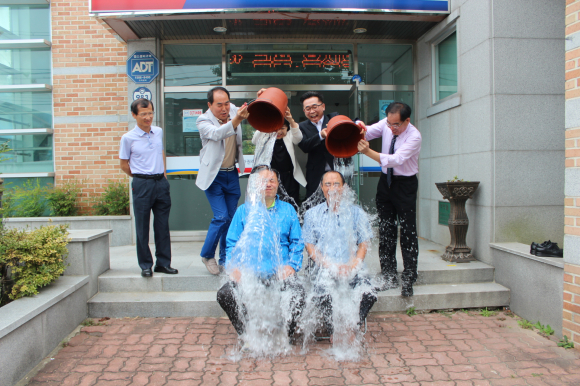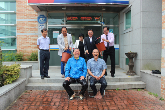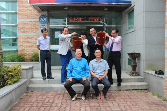 ° »ç¹«±¹ÀåÀÇ ¾ÆÀ̽º ¹öŶ 縰Áö´Â ¹è³ª¼¶¸ðÀÓ È¸¿øµé°ú ÇÔ²² ¼±°üÀ§ °Ç¹° ¾Õ¿¡¼ ° »ç¹«±¹ÀåÀÌ ´ÙÀ½ ´ë»óÀÚ·Î Áö¸ñÇÑ È²Á¤Åà ÀÍ»ê»õ¸¶À»ÇùÀÇȸÀå°ú ÇÔ²² ¾óÀ½¹°À» µÚÁý¾î½è´Ù.