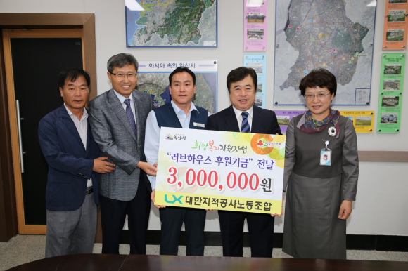ÀÍ»ê½ÃÈñ¸Áº¹Áö´ÜÀ¸·ÎºÎÅÍ ¾ÈŸ±î¿î »ç¿¬À» Á¢ÇÑ LX´ëÇÑÁöÀû°ø»ç ³ëµ¿Á¶ÇÕÀº Á¶ÇÕ¿øµéÀÌ Á¶±Ý¾¿ ¸ðÀº ±â±ÝÀ» ¼±¶æ ÈÄ¿ø±â±ÝÀ¸·Î ³»³õ¾ÒÀ¸¸ç À̹ø LX´ëÇÑ ÁöÀû°ø»ç ³ëµ¿Á¶ÇÕÀÇ ÈÄ¿øÀ¸·Î µ¿·ÎŸ¸®Å¬·´ ·¯ºêÇϿ콺 ÃßÁø¿¡ ºÎ´ãÀ» ´ú ¼ö ÀÖ°Ô µÆ´Ù.