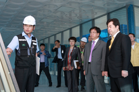 À̳¯ ¹Ú ½ÃÀåÀº Çѱ¹Ã¶µµ°ø»ç ÀüºÏº»ºÎ °ü°èÀÚ, ½Ã°ø»ç ¹× ÀÍ»ê½Ã°ø¹«¿ø µî 20¿©¸í°ú ÇÔ²² KTX Àͻ꼱»ó¿ª»ç ³» ÀÍ»ê½Ã È«º¸ ¹× Àü½Ã½Ç °ÇÃà ÇöÀåÀ» ¹æ¹®ÇÏ¿© ÃßÁø »óȲÀ» »çÀü Á¡°Ë Çß´Ù