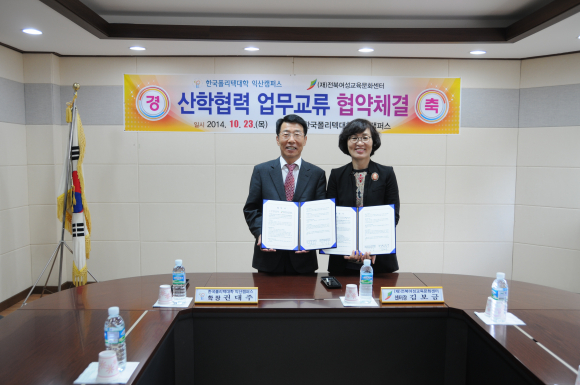 Çѱ¹Æú¸®ÅØ´ëÇÐ ÀÍ»êÄ·ÆÛ½º´Â À̹ø Çù¾àÀ» ÅëÇØ ÀüºÏÁö¿ª ¿©¼º ÀÏÀÚ¸® ¹Ì½º¸ÅĪ ÇØ¼Ò ¹× Ãë¾÷Áö¿ø¿¡ ´ëÇÑ Àû±ØÀûÀÎ ÇùÁ¶¸¦ ¾à¼ÓÇß´Ù.