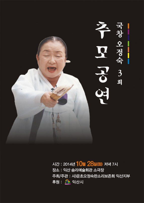 (»ç)¿îÃÊ ¿ÀÁ¤¼÷ ÆÇ¼Ò¸® º¸Á¸È¸ ÀÍ»êÁöºÎ(ÁöºÎÀå À̸í¹è)ÀÇ Á¤±â°ø¿¬ÀÌÀÚ Ãß¸ð°ø¿¬À¸·Î ¸¶·ÃµÈ À̹ø °ø¿¬¿¡´Â Àü±¹ÀÇ ¿ÀÁ¤¼÷ Á¦ÀÚµéÀÌ ´Ù¼ö Ã⿬ÇÏ¿© ¿ì¸® ¼Ò¸®ÀÇ Áø¼ö¸¦ º¸¿©ÁØ´Ù.