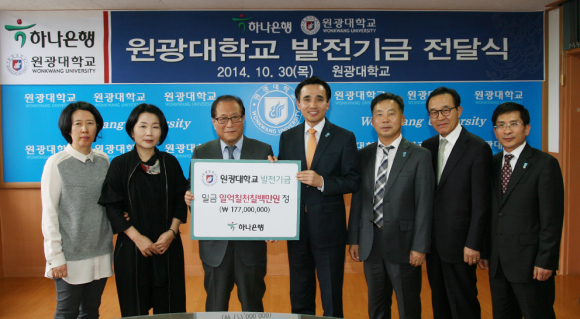 ÀÌ ÀÚ¸®¿¡¼ ±èÁ¤±â Àü¹«´Â È£³² ´ëÇ¥ »çÇÐÀÎ ¿ø±¤´ëÇб³¿Í ÇϳªÀºÇà °£ Çù·Â¿¡ ´ëÇÑ Á߿伺À» °Á¶¸ç ¡°ÁÖ°Å·¡ ÀºÇàÀ¸·Î¼ ¿ø±¤´ë°¡ È£³²ÀÎÀç À°¼ºÀ» À§ÇØ ±â¿©Çϴµ¥ º¸ÅÆÀÌ µÇ¸é ÁÁ°Ú´Ù¡±¸ç, ¡°Áö¼ÓÀûÀÎ Çù·ÂÀ» ÅëÇØ °øµ¿ ¹ßÀüÇÒ ¼ö ÀÖµµ·Ï ³ë·ÂÇØ ³ª°¡°Ú´Ù¡±°í ¸»Çß´Ù.