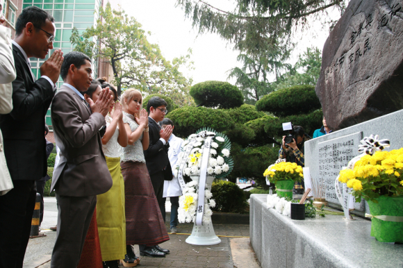 ÀÌ¿¡ ¼ý µð³ª ´ë»ç ÀÏÇàÀº Ư°¿¡ ¾Õ¼ 1997³â »ç·Î°í ¸ñ¼ûÀ» ÀÒÀº Àǰú´ëÇÐ ºÀ»ç´Ü °í ±èºÀ¼®, À̼º¹Î ¹Ú»çÀÇ ¼þ°íÇÑ Á¤½ÅÀ» ±â¸®±â À§ÇØ ¿ø±¤´ë ±³Á¤¿¡ ¼¼¿öÁø Ã߸ðºñ¸¦ ã¾Æ ÇåÈÇϰí, ¿À´ÃÀÇ Àο¬À» ¸¸µé¾îÁØ °íÀεéÀÇ ³ÌÀ» ±â·È´Ù.