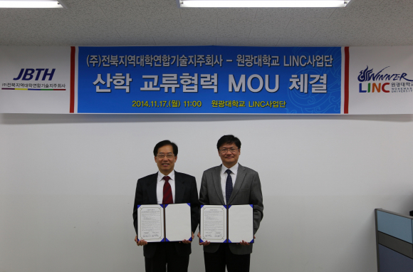 |  | | | ¨Ï ÀÍ»ê½Å¹® | | ¿ø±¤´ëÇб³ À§³Ê¸µÅ©»ç¾÷´ÜÀº 17ÀÏ, ¿ø±¤´ëÇб³ ÇлýÁö¿ø°ü¿¡¼ (ÁÖ)ÀüºÏÁö¿ª´ëÇп¬ÇÕ±â¼úÁöÁÖȸ»ç(ÀÌÇÏ ÀüºÏ±â¼úÁöÁÖȸ»ç)¿Í ¾÷¹«Á¦ÈÞ ¾çÇØ°¢¼(MOU)¸¦ ü°áÇß´Ù.