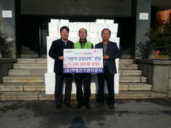 (À¯)ÇÏ¿µÀü±â°ü¸®°ø»ç(´ëÇ¥ ȲȣÇÊ)°¡ 25ÀÏ ±èÀå±èÄ¡ 5Kg 240¹Ú½º(350¸¸¿ø»ó´ç)¸¦ Èñ¸Áº¹ÁöÁö¿ø»ç¾÷¿¡ ±âŹÇß´Ù.
