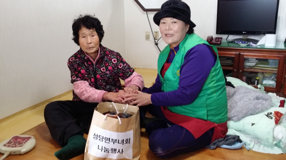 ¼º´ç¸éºÎ³àȸ(ȸÀå ±è¿µ¾Ö)°¡ 2ÀÏ Áö¿ª µ¶°Å³ëÀεéÀ» ã¾Æ µû¶æÇÑ ÀÌ¿ô»ç¶ûÀ» ÆîÃÆ´Ù.