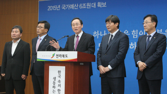 ÀüºÏµµ´Â 3ÀÏ µµÃ» ºê¸®Çη뿡¼ ¼ÛÇÏÁø Áö»ç¿Í ÀÌÃá¼®, ÀÌ»óÁ÷, ±èÀ±´ö, ±èÃáÁø ±¹È¸ÀÇ¿ø µîÀÌ Âü¼®ÇÑ °¡¿îµ¥ ±âÀÚȸ°ßÀ» ¿°í ³»³âµµ ±¹°¡¿¹»êÀÌ 6Á¶ 150¾ï¿øÀ» È®º¸Çß´Ù°í ¹àÇû´Ù.