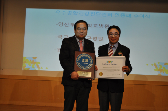 ¿ø±¤´ëÇб³º´¿ø ¼°Ë¼® Á¾ÇհǰÁõÁø¼¾ÅÍÀåÀº ¡°'Áúº´Àº ¿¹¹æÀÌ ÃÖ¼±ÀÌ´Ù'´Â ¸»Ã³·³ °Ç°°ËÁøÀº Áúº´À» Á¶±â¿¡ ¹ß°ßÇÏ¿© Ä¡·á ÇÒ »Ó¸¸ ¾Æ´Ï¶ó °Ç°ÀÇ À§Çè ¿ä¼Ò¸¦ ÆÄ¾ÇÇØ Áúº´ ¿¹¹æ¿¡ ÷º´ ¿ªÇÒÀ» Çϰí ÀÖ´Ù"¸ç "±×µ¿¾È º»¿ø¿¡¼´Â Á¾ÇհǰÁõÁø¼¾ÅÍ¿¡ ÃÖ÷´Ü °Ë»ç Àåºñ, ÃÖÀûÈ µÈ °ËÁø ÇÁ·Î±×·¥, ÄèÀûÇÑ °ËÁøÈ¯°æµéÀ» À§ÇØ ±³Á÷¿ø ¸ðµÎ°¡ ½ÉÇ÷À» ±â¿ï¿© ¿Ô±â ¶§¹®¿¡ À̹ø ¿ì¼öÁ¾ÇÕ °Ç°ÁõÁø¼¾ÅÍ ÀÎÁõÀº ±× °á°ú¹°À̱⿡ ±â»ÝÀÌ ¹è°¡ µÈ´Ù¡±°í ¼Ò°¨À» ¹àÇû´Ù.