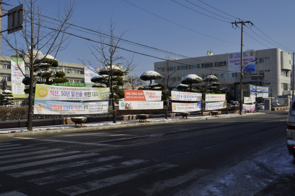 19ÀÏ ÀÍ»ê½Ãû ÁÖÀ§¸¦ µÑ·¯º» °á°ú û»ç¿Í Á¤¹®ÁÖÀ§ Àεµ¿¡ 16°³ÀÇ Çö¼ö¸·ÀÌ ÁÙÁö¾î °É·Á ÀÖ¾ú´Ù. ´ëºÎºÐ ÀÍ»ê½Ã¿¡¼ °Ç ÀÌ Çö¼ö¸·µéÀÇ ³»¿ëÀº ½ÄǰŬ·¯½ºÅÍ ±â°ø½ÄÀ̳ª À̸®³ó¾Ç µî ½ÃÁ¤ È«º¸¸¦ ´ã°í ÀÖ´Ù. ÀÌ·± Çö¼ö¸·µéÀº ÁöÁ¤ °Ô½Ã´ë°¡ ¾Æ´Ñ °÷¿¡ °É·Á ÀÖ¾î ºÒ¹ý Çö¼ö¸·¿¡ ÇØ´çµÈ´Ù.