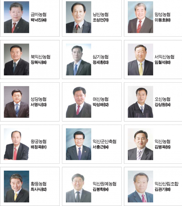 ¾Æ¿ï·¯ ¿À»ê³óÇù Á¶ÇÕÀå¿¡´Â °»ó¿ø È帰¡, ¿Õ±Ã³óÇù ¹èÁ¤¿í Èĺ¸, Àͻ걺»êÃàÇù ¼Ãæ±Ù Èĺ¸, ÀÍ»ê³óÇù ±èº´¿Á Èĺ¸, ÀÍ»ê¿ø¿¹³óÇù ±èºÀÇÐ Èĺ¸, ÀÍ»ê»ê¸²Á¶ÇÕ ±è°ü±â È帰¡ °¢°¢ ¼±ÃâµÆ´Ù. Ȳµî³óÇù Á¶ÇÕÀå¿¡´Â ÃÖ»ç½Ä Çö Á¶ÇÕÀåÀÌ ¹«ÅõÇ¥ ´ç¼±µÆ´Ù.