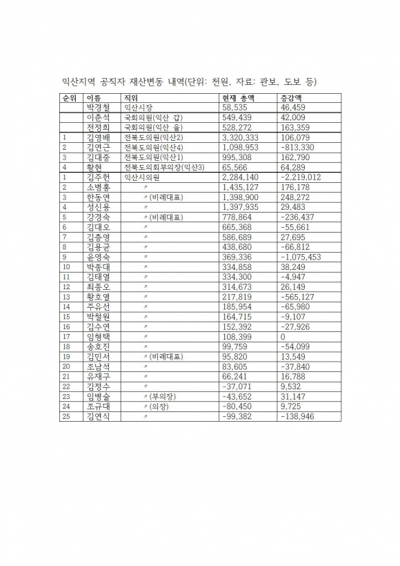 ÀÍ»ê½ÃÀÇȸÀÇ °æ¿ì Çѵ¿¿¬ ÀÇ¿øÀÇ Àç»ê(13¾ï9õ8¹é900õ¿ø)Àº 2¾ï4õ8¹é272õ¿øÀÌ Áõ°¡ÇØ Á¦ÀÏ ¸¹ÀÌ ´Ã¾úÀ¸¸ç 1¾ï7õ6¹é178õ¿øÀÌ Áõ°¡ÇÑ ¼Òº´È« ÀÇ¿øÀÇ Àç»ê(14¾ï3õ5¹é127õ¿ø)ÀÌ µÚ¸¦ À̾ú´Ù.