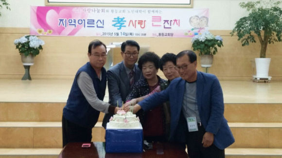 ÀÌ¿ô»ç¶û³ª´®È¸(ÀÌ»çÀå Á¤µ¿¿î, ´ëÇ¥ ±è¿Á»ê)´Â Áö³ 14ÀÏ ¿ÀÀü 10½Ã 30ºÐ¿¡ Ȳµî±³È¸´ç¿¡¼ Áö¿ª ¾î¸£½Å üø»ç¶û Å«ÀÜÄ¡¸¦ °³ÃÖÇß´Ù. ÀÌ Çà»ç´Â ÀÌ¿ô»ç¶û³ª´®È¸°¡ Áö¿ª ¾î¸£½ÅµéÀ» °ø°æÇؿ Ȳµî±³È¸ ³ëÀδëÇÐ(Çа¨:Á¶Ãá½Ä)°úÀÇ ±³·ùÇù·Â(MOU)À» ¸ÎÀ¸¸é¼ ±× ½ÃÀÛÀ¸·Î ¾î¸£½Å °ø°æÀ» ½ÇõÇϱâ À§ÇØ ±âȹµÈ Çà»ç´Ù. ÀÌ ³¯ Çà»ç´Â ¾î¸£½Åµé ³ë°í¸¦ Ä¡ÇÏ´Â Àǹ̷ΠÁ¤µ¿¿î ÀÌ»çÀåÀÇ Àλ縻À» ½ÃÀÛÀ¸·Î Çà»ç¸¦ ÃàÇÏÇÏ´Â ÄÉÀÌũĿÆÃ°ú ³ëÀδëÇÐ µµ¿ì¹Ì ÃÖ¹ÌÈñ ¾¾ÀÇ ¾î¹öÀÌÀÇ ³ë·¡ Àεµ, ¼Û¿µ´ë ÀºÇýºÎµ¿»ê ´ëÇ¥ÀÇ ³ë·¡ÀÚ¶û ÁøÇà, È«½ÅÀÚ ¾¾ÀÇ ¸¶¼ú°ø¿¬, ¹Ú¹Ì¿µ ¾¾ÀÇ ¿ôÀ½Ä¡·á ¹«´ë°¡ ÆîÃÄÁ³´Ù. ¹Ú¹Ì¿µ ¾¾´Â Æò¼Ò ¾î¸£½ÅµéÀ» °ø°æÇØ¿À¸é¼ À̸¦ À§ÇÑ È¿°úÀûÀÎ ¹æ¹ýÀ¸·Î ¿ôÀ½Ä¡·á¸¦ ¹è¿ö Àç´É±âºÎ·Î Âü¿©Çß´Ù. ±×´Â ÇöÀç Ȳµî¸é ½Å¼ºº¸°ÇÁø·á¼Ò ¼ÒÀåÀ¸·Î Áö¿ª ¾î¸£½ÅµéÀÇ º¸°ÇÀ§»ýÀ» Ã¥ÀÓÁø °øÁ÷ÀÚÀ̱⵵ ÇÏ´Ù. ÀÌ Çà»ç¸¦ À§ÇØ ÀÌ¿ô»ç¶û³ª´®È¸´Â °ø¿¬±âȹ°ú °£½Ä°ú À½·á¼ö¿Í Á¡½É½Ä»ç µî ÀÏüÀÇ ºñ¿ëÀ» Á¦°øÇß´Ù. ÀÌ ³¯ Âü¼®ÇÑ 160¿©¸íÀÇ ¾î¸£½Å°ú 20¿©¸íÀÇ ºÀ»çÀÚµéÀº ÀÌ¿ô»ç¶û³ª´®È¸ °ü°èÀÚµéÀÇ ¼ÕÀ» ¸ÂÀâ°í °í¸¶¿òÀ» Ç¥Çß´Ù.