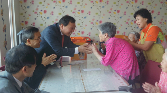 Á¤µ¿¿î ÀÌ»çÀåÀº ¡°¿À´ÃÀº À¯³È÷µµ ¹«´õ¿üÀ½¿¡µµ ¿ì¸® ȸ¿øµéÀÌ ¶Ê¶Ê ¹¶ÃÄ Áö¿ª û¼Ò¿¡ ÃÖ¼±À» ´ÙÇØÁÖ´Â ¸ð½À¿¡ °¨µ¿Çß´Ù¡±¸é¼ ¡°ÀÌ»çȸ°¡ Áö¿ªÀÇ ¾î¸£½ÅµéÀ» ¼¶±â´Â ÀϱîÁö °¨´çÇÏ´Ï ¿ì¸® ÀÌ»çµéÀ̾߸»·Î ¼¶±èÀ» ¹Þ±âº¸´Ù ¼¶±â´Â ¼¹øÆ® ¸®´õ½ÊÀ» ¹ßÈÖÇÏ´Ï ±Í°¨ÀÌ µÈ´Ù¡±°í °¨È¸¸¦ ¹àÇû´Ù.