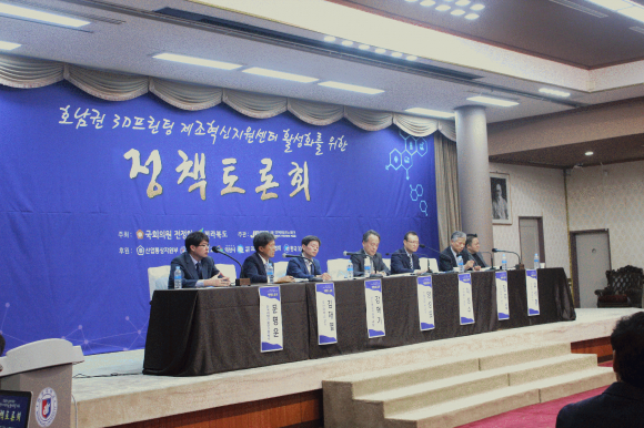 ÀüÁ¤Èñ ±¹È¸ÀÇ¿ø(»õÁ¤Ä¡, ÀÍ»êÀ»)°ú ÀüºÏµµ°¡ 12ÀÏ ¿ø±¤´ë¿¡¼ °³ÃÖÇÑ ¡®È£³²±Ç 3DÇÁ¸°ÆÃ Á¦Á¶Çõ½Å¼¾ÅÍ(Á¦Á¶Çõ½Å¼¾ÅÍ) Ȱ¼ºÈ ¹æ¾È Á¤Ã¥Åä·Ðȸ¡¯¿¡¼ Àü¹®°¡µéÀº Á¦Á¶Çõ½Å¼¾ÅͰ¡ À¯ÅÏ ±â¾÷ÀÇ °æÀï·Â °È, À¶º¹ÇÕ»ê¾÷À» Ȱ¼ºÈ½ÃŰ´Â Ã˸Š¿ªÇÒÀ» ÇÒ °ÍÀ¸·Î Àü¸ÁÇß´Ù.