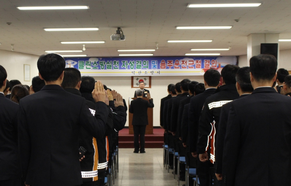 °¿ø¼® ¼Ò¹æ¼ÀåÀº Âü¼®ÇÑ Á÷¿øµé¿¡°Ô ¡°±ú²ýÇÑ ¼Ò¹æÇàÁ¤À» ÃßÁøÇÏ¿© ½Ã¹Îµé¿¡°Ô °¨µ¿À» ÁÖ°í ½Å·Ú¸¦ ¹Þ´Â Ŭ¸° ÀÍ»ê¼Ò¹æ Á¤ÂøÀ» À§ÇØ ÃÖ¼±À» ´ÙÇØ ´Þ¶ó¡± ´çºÎÇß´Ù.