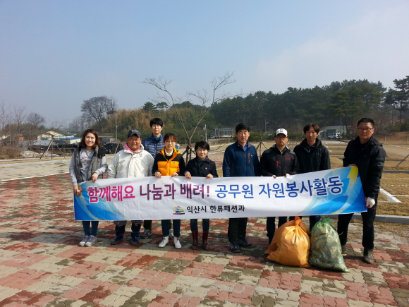 ÀÍ»ê½Ãû ÇÑ·ùÆÐ¼Ç°ú¿Í ȸ°è°ú Á÷¿øµéÀÌ 19ÀÏ ³óÃ̸¶À»¿¡¼ ȯ°æÁ¤È ºÀ»çȰµ¿À» ÆîÃÆ´Ù.