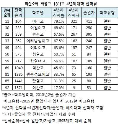 ¶Ç ÀüºÏ ¼ÒÀç ÀϹݰíÁß ´ëÇÐÁøÇзü 80%¸¦ ³Ñ±ä Çб³°¡ 8°³±³À̳ª ÀÍ»êÁö¿ª °í±³´Â À̸®°í¸¸ 70%¸¦ ¿ôµ¹¾ÒÀ» »Ó ³ª¸ÓÁö 12°³ Çб³´Â 70% ¾Æ·¡¸¦ ¹Øµ¹¾Ò´Ù.
