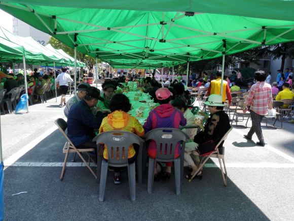 Çà»ç´Â 500¿©¸íÀÇ Áֹεé°ú °ü°èÀÚ°¡ Âü¿©ÇÑ °¡¿îµ¥ 1000¿©¸íÀÌ ¸ÔÀ» ¼ö ÀÖ´Â ±¹¼ö¸¦ ÁغñÇÏ°í ³ª´® Àǹ̸¦ ½ÇõÇÏ°í ºÀ»ç¸¦ ´õÇØ ´ëÁ¢Çß°í, ÀÇ·ù¹ÙÀÚ´Â ¾î·Á¿î ÀÌ¿ôµé¿¡°Ô ¿¬Åº ³ª´®À» ÇÑ´Ù´Â ¶æ ±íÀº Àǹ̰¡ ´õÇß´Ù.