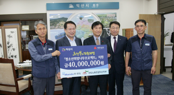 ¢ß¸¸µµ Suspension»ç¾÷º»ºÎ(º»ºÎÀå ¼Û¹ü¼®), ¸¸µµ³ëµ¿Á¶ÇÕ ÀÍ»êÁöºÎ(ÁöºÎÀå ¿©ºÎ±Ù)°¡ 5¿ù24ÀÏ ÀÍ»ê½ÃûÀ» ¹æ¹®ÇØ ¡®Ã»¼Ò³â Èñ¸Á³ª¹« ÇÁ·ÎÁ§Æ®¡¯¿¡ ½á ´Þ¶ó¸ç 4,000¸¸¿øÀ» ±âŹÇß´Ù.
