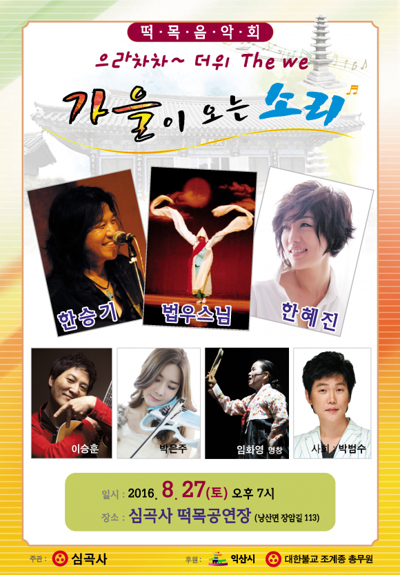 ´Ê´õÀ§¸¦ ÀØ°í ½£ ¼Ó¿¡¼ Èú¸µÇÒ ¼ö ÀÖ´Â ¶±¸ñÀ½¾Çȸ ¡®°¡À»ÀÌ ¿À´Â ¼Ò¸®¡¯°¡ ¿À´Â 27ÀÏ ¿ÀÈÄ7½Ã ¹Ì¸¤»ê ÁßÅο¡ ÀÚ¸® ÀâÀº ½É°î»ç(ÁÖÁö½º´Ô Á¤¾È)¿¡¼ ¿¸°´Ù.