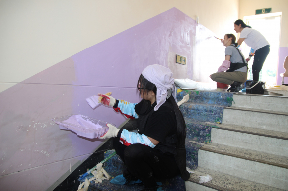 À̹ø ÆäÀÎÆ®Ä¥ ÀÛ¾÷Àº Áö¿ª»çȸ¿Í Çб³, Çкθ𰡠¶æÀ» ¸ðÀº ÀÛǰÀ¸·Î ÀÛ¾÷ÀÇ ¸ðµç °úÁ¤Àº Çкθð´ÔµéÀÌ ¸ð¿©¼ Àü¹®°¡ÀÇ ¼Ø¾¾¸¦ ¶Ù¾î³ÑÀ» Á¤µµ·Î ¼¶¼¼ÇÏ°Ô Çùµ¿ ´Ü°áÇÏ¿© Áñ°Ì°Ô ÁøÇàµÆ´Ù.