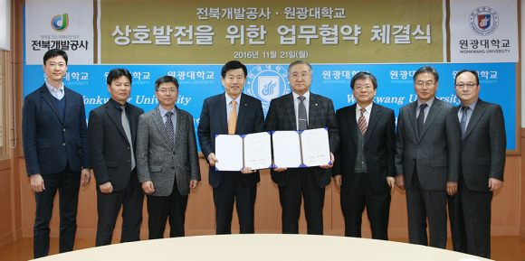 ¿ø±¤´ëÇб³(ÃÑÀå ±èµµÁ¾)¿Í ÀüºÏ°³¹ß°ø»ç(»çÀå °íÀçÂù)°¡ Áö¿ª»çȸ ¹ßÀü µµ¸ð ¹× ¿øÈ°ÇÑ Çù·Âü°è ±¸ÃàÀ» À§ÇÑ ¾÷¹«Çù¾àÀ» ü°áÇß´Ù.