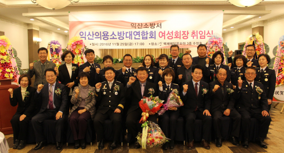ÀÍ»êÀÇ¿ë¼Ò¹æ´ë¿¬ÇÕȸ¿¡ µû¸£¸é Áö³ 25ÀÏ ¹éÁ¦¿þµù¹®È¿ø ¼öÁ¤È¦¿¡¼ ÃëÀÓ½ÄÀ» °¡Á³´Ù°í ÀüÇß´Ù. À̳¯ ÃëÀӽĿ¡´Â Á¤ÇåÀ² ÀÍ»ê½ÃÀåÀ» ºñ·ÔÇØ ȲÇö µµÀÇȸ ÀÇÀå, Á¶¹è¼÷ ±¹È¸ÀÇ¿ø, ¼Òº´È« ÀÍ»ê½ÃÀÇȸ ÀÇÀå, ±è¼®¿ë ¼Ò¹æ¼Àå, Áö¿ª½ÃÀÇ¿ø, ±â°ü ´ÜüÀå ¹× ÀÇ¿ë¼Ò¹æ´ë¿ø, ¼Ò¹æ°ø¹«¿ø µî 100¿©¸íÀÌ Âü¼®ÇØ ÀÚ¸®¸¦ ÇÔ²² Çß´Ù.
