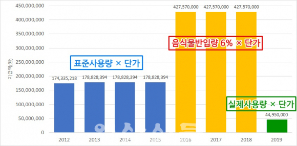 ÀÍ»ê½ÃÀÇȸ ÀÓÇüÅà ÀÇ¿øÀº ÀÌ´Þ 10ÀÏ ¿¸° Á¦1Â÷ Á¤·Êȸ ½ÃÁ¤Áú¹®¿¡¼ ¡°ÀÍ»ê½Ã´Â Á¾·®Á¦°¡ ½Ç½ÃµÈ À½½Ä¹°¾²·¹±â¸¦ Åðºñ·Î ¸¸µå´Â °úÁ¤¿¡ »ç¿ëÇÏ´Â Àç·áºñ(Åé¹ä)¸¦ 2012³âºÎÅÍ 2015³â±îÁö 4³â µ¿¾È ¸Å³â 1¾ï 7,880¸¸¿øÀ» Áö±ÞÇߴµ¥, 2016³â Àç°è¾à ¶§ ¸Å³â 4¾ï 2760¸¸¿øÀ¸·Î 2¹è ÀÌ»ó ¿Ã·ÁÁá´Ù¡±¸ç ¡°°ú´ëÁö±ÞÀ̶ó¸é ȯ¼öÇÏ¶ó¡±°í ¿ä±¸Çß´Ù.