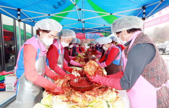 ¿ÃÇØ 12³âÂ÷ ½Ç½ÃÇÏ´Â ±èÀ峪´®¿¡ ¾²ÀÌ´Â ±èÀå±èÄ¡ Àç·á´Â µµ³» »ýȰ°³¼±È¸¿øµéÀÌ Á÷Á¢ Àç¹èÇÑ ¹èÃß¿Í °íÃ߸¦ »ç¿ëÇß°í, Âü¿©ÇÑ È¸¿øµéÀº ±èÀå±èÄ¡¿Í ÇÔ²² ¿ì¸®½Ò·Î ¸¸µç ½Ò±¹¼ö¸¦ °°ÀÌ Àü´ÞÇß´Ù.