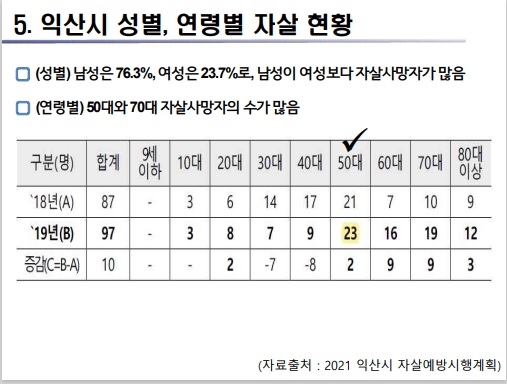 ´õºÒ¾î ¡°ÀÍ»ê½ÃÀÇ °æ¿ì Á¤½Å°Ç°º¹Áö¼¾ÅÍ¡¯¿¡¼ ½É¸®»ó´ã°ú Àڻ칮Á¦¸¦ ´Ù·ç°í ÀÖ°í Àڻ쿹¹æ½ÃÇà°èȹ¿¡ µû¶ó Á߳⠳²¼º 10¸í¿¡ ´ëÇØ °æÁ¦Àû ¾î·Á¿òÀ» ÇØ¼ÒÇØÁÖ±â À§ÇØ Á÷¾÷À» ¿¬°áÇØÁÖ´Â °ÍÀ¸·Î Á߳⠳²¼ºÀÇ Àڻ쿹¹æ»ç¾÷ÀÌ ÁøÇàµÇ°í ÀÖÁö¸¸ ±× ´ë»óÀÌ ¸Å¿ì Çù¼ÒÇϰí ÇѰ谡 ¸¹´Ù¡±°í ÁÖÀåÇß´Ù.