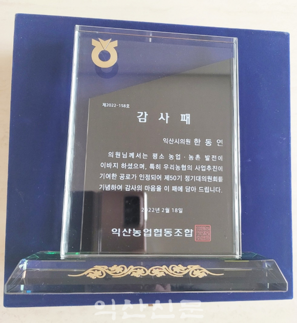 ÀÍ»ê³óÇùÀº ÀÌ´Þ 18ÀÏ Á¦50ȸ Á¤±â´ëÀÇ¿øÈ¸ÀǸ¦ ¿¬ ÀÚ¸®¿¡¼ Æò¼Ò ³ó¾÷¡¤³óÃ̹ßÀü¿¡ À̹ÙÁöÇϰí ÀÍ»ê³óÇù »ç¾÷ÃßÁø¿¡ ±â¿©ÇÑ °ø·Î¸¦ ÀÎÁ¤, Çѵ¿¿¬ ½ÃÀÇ¿ø¿¡ °¨»çÆÐ¸¦ ¼ö¿©ÇÑ °Í.