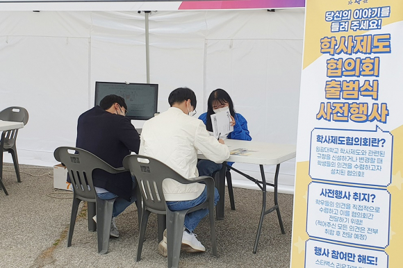 15ÀÏ Ãâ¹ü½ÄÀÌ ¿¸° °¡¿îµ¥ ÃÑÇлýȸ´Â ÀÌ¿¡ ¾Õ¼ Áö³ 10ÀϺÎÅÍ 11ÀϱîÁö »çÀü Çà»ç·Î ¸¶·ÃÇÑ ¡®¹¯°í(ASK) ´õºí·Î °¡¡¯ ÇÁ·Î±×·¥À» ÅëÇØ ÀçÇлýµé¿¡°Ô ÇлçÁ¦µµÇùÀÇȸ Ãâ¹ü ¹× ¹æÇ⼺À» ¾Ë¸®°í, ´Ù¾çÇÑ ÀǰßÀ» ¼ö·ÅÇØ ±× ³»¿ëÀ» Ã¥ÀÚ·Î ¸¸µé¾î ¹Ú¸Í¼ö ÃÑÀå¿¡°Ô Àü´ÞÇß´Ù.